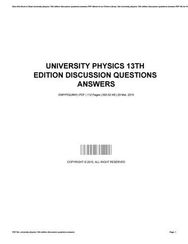 Read UNIVERSITY PHYSICS 13TH EDITION ANSWER KEY Epub
